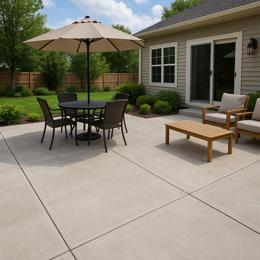 Bring texture and character to your patio with stamped concrete, which mimics the look of natural stone, brick, or slate. It’s a popular choice for homeowners who want a decorative concrete patio that combines strength with elegance.